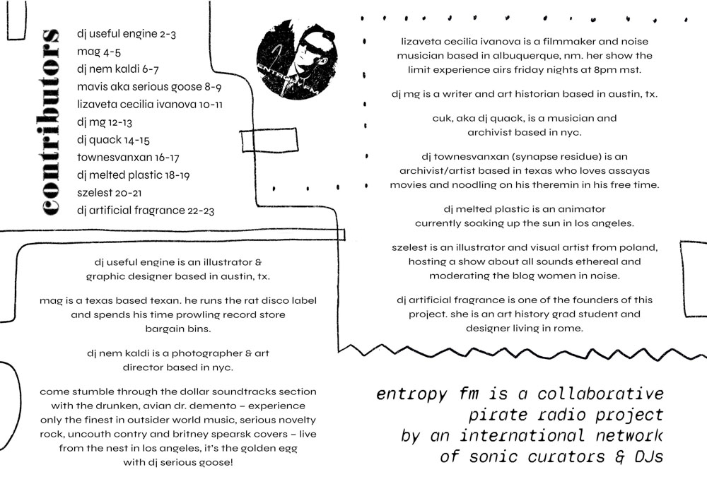 cover, illustration, and layout for ENTROPY FM RADIO’s first zine.